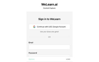 WeLearn 内容捕获非常适合学生、教育工作者和研究人员,便于将学习资源组织成一个集中库。通过使用 USC Google 账户或 WeLearn.ai 凭据登录,用户可以高效地编译和管理来自网络的教育材料,从而提升他们的学习和研究体验。